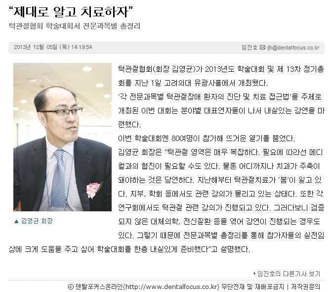 152    [´ëÇÑÅΰüÀýÇùȸ Àӻ󯝰­] 9. À¯·´ TMJ¿¡ ´ëÇÑ °ü½Éµµ